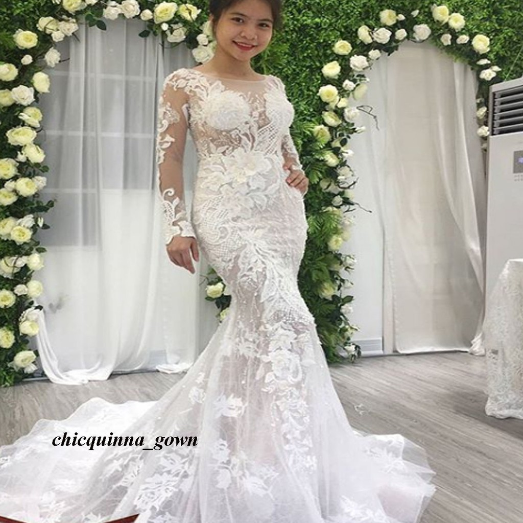 Wedding Dress Mermaid Gaun Pengantin Muslim Baju Pengantin Brokat Mewah