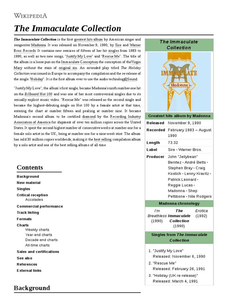 The Immaculate Collection Wikipedia