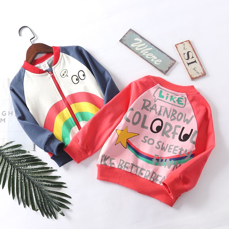 2019 New Middle School Children Stand Collar Zipper Loop Coat Cotton