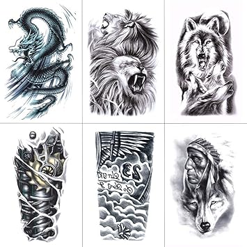 Amazon Com Large Arm Sleeve Tattoo Sketch Lion Tiger